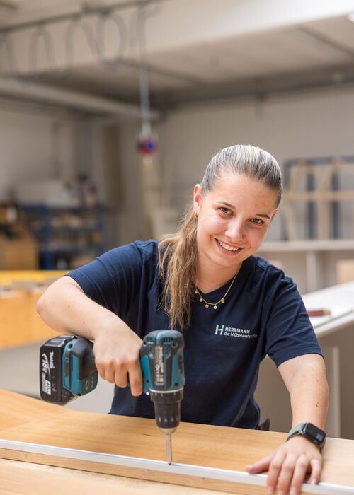 Nachwuchsförderung wird bei HERRMANN großgeschrieben. Das Unternehmen bietet jedes Jahr bis zu drei jungen Menschen die Chance, ihre Ausbildung zum Schreiner in einem modernen und praxisorientierten Umfeld zu beginnen. Besonders wertvoll: Die Auszubildenden arbeiten von Anfang an im realen Betrieb mit und können so die gesamte Fertigungstiefe erleben – vom ersten Zuschnitt bis zur Montage beim Kunden.